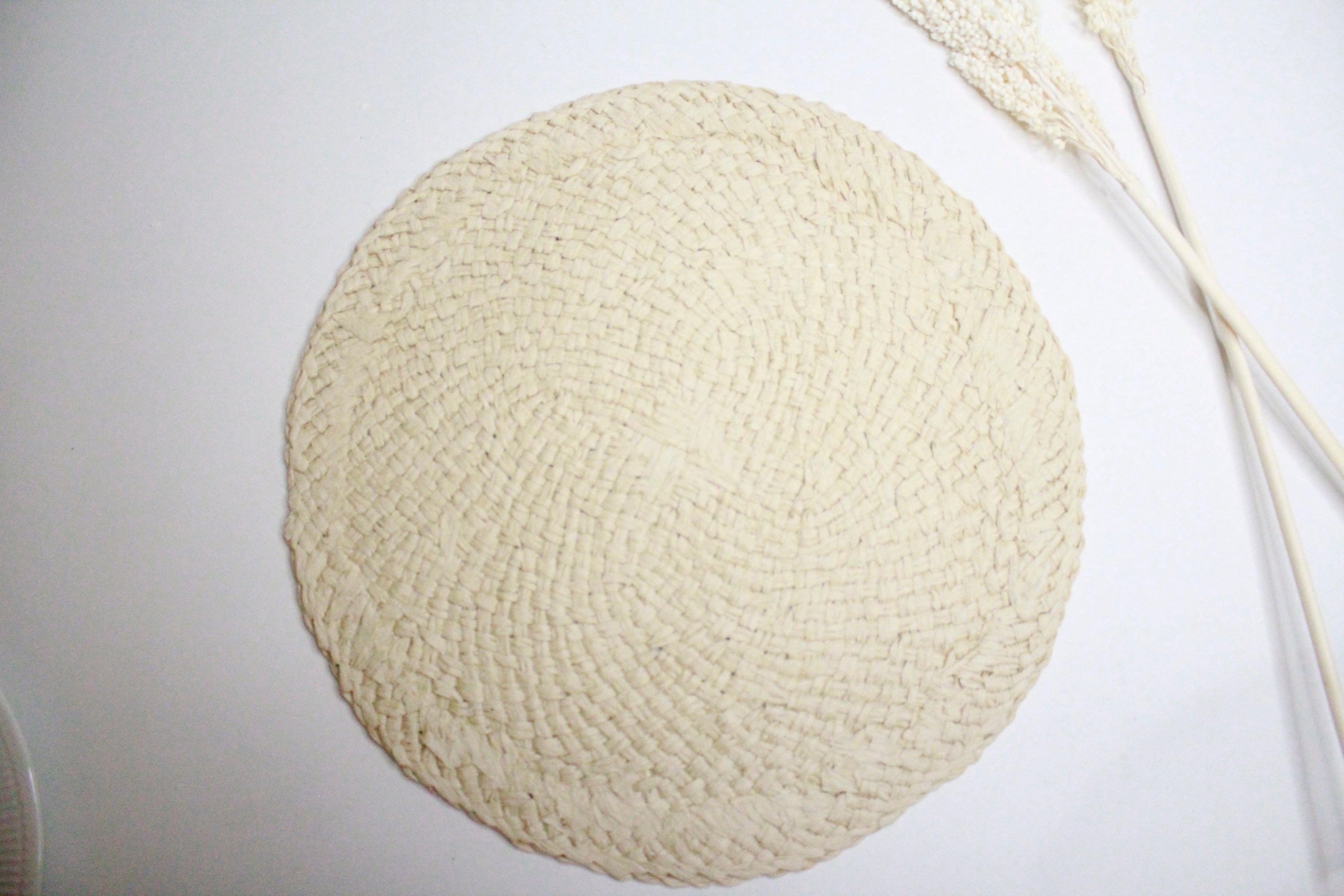 المادة: مصنوع من الخوص الطبيعي، مما يوفر سطحًا مقاومًا للحرارة وسهلاً في العناية.